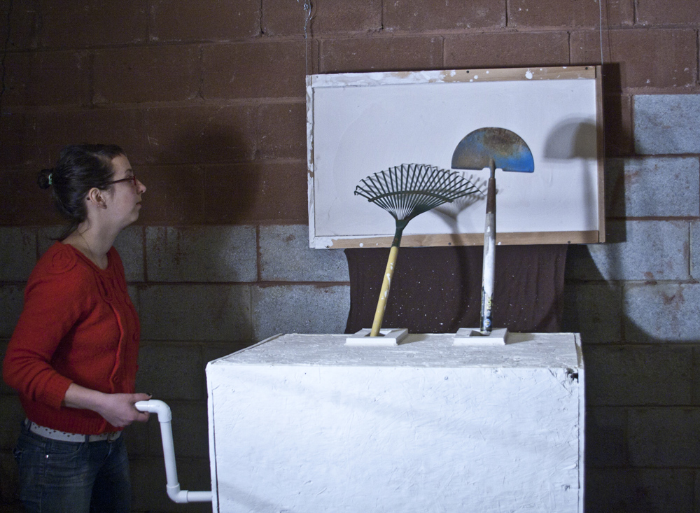 The Forgotten Tools January 4, 2014 This interactive piece uses tools to slowly scratch away at the surface of a plaster block when the crank is turned.