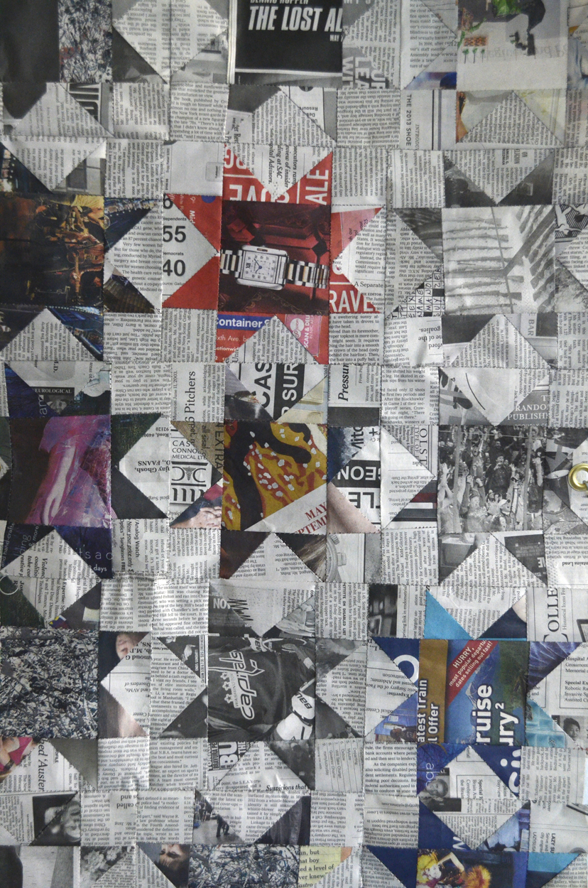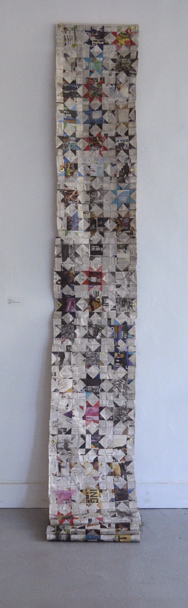9′ x 1.5′ star block pattern quilt sewn in newspaper